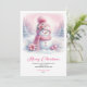 Trendy Pink Snowman Digital Christmas Scene Cards