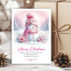 Celebrate the season with this cute watercolor pink coquette snowman kids Christmas card, set in a magical snowy forest. Editable text lets you personalize instantly, and the digital download provides an easy, fast, and festive holiday greeting.