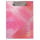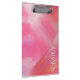 Cute, girly, and trendy pink and white marble / watercolor custom clipboard with your name printed in modern block lettering, vertically up the side. Great for holding your papers and documents in the home, school, or office. Perfect to use as a solid, sturdy writing surface when you're on the go. Contact us for help with customisation or matching products.
