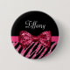Your teenage girl will feel immersed in girly luxury with this chic designer pink and black glitter-like zebra print button with a sequin sparkle ribbon tied into a luxe bow. Personalise this glitz and glam animal print fashion design by adding her name. Flat printed image, not actual glitter or ribbon.