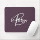 Trendy Plum Purple Grey White Script Monogram Mouse Mat