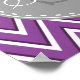 Chic, trendy, modern, purple and white zigzag chevron pattern with monogram and name template on a circle shape gray label frame. A cool, personalized geometric design in a stylish color palette.