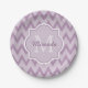 Trendy Purple Chevron Zigzag Name and Monogram Paper Plate