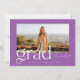 This modern and trendy graduation announcement features a purple and white colour palette and a large photo of your graduate. A bold and stylish "Grad" adorns the front. The back of the card features simple type allowing you to tell more about your graduate and their plan for the future. Or, you can change it to a graduation party invitation. You can find other versions of this design in my Zazzle store.