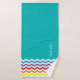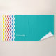 Trendy Rainbow Chevron Teal Pattern Personalised Bath Towel Set