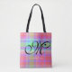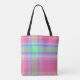 Trendy Rainbow Plaid Stripes Girly Script Monogram Tote Bag