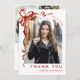 Trendy Red Bow Ribbon 4 PHOTO Graduation Thank You Card