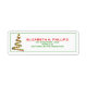 This green framed label features a colourful abstract art swish red, green, and gold Christmas tree. It has a faux gold glitter star topper. The template information is on the right side of the label. Fill in the template text fields under personalise.
