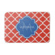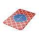 Trendy Red Quatrefoil Blue Monogram and Name Bath Mat