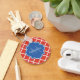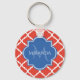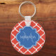 Trendy Red Quatrefoil Blue Monogram and Name Key Ring