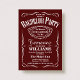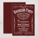 This invitation channels the classic aesthetic of a vintage spirits label, making it a perfect choice for a sophisticated "Bachelor Barbecue," whiskey tasting, or a night out on the town. The trendy typography contains a dynamic mix of serif, script, and block fonts that create a high-contrast, professional looking design inspired by traditional apothecary or vintage liquor bottle labels. The ornate decorative flourishes and a central framed crest to honour "The Groom To Be." is clean, masculine, and timeless—ideal for a celebration that is both fun and formal. Easily personalise each line of text to create a unique invitation for your upcoming event. More colour options are available.