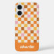 Make a bold statement with this custom phone case featuring a trendy chequerboard pattern in vibrant orange, pink, and cream hues. Personalise it with your name in a fun retro font for a playful and unique touch. Perfect as a girly gift idea for someone who loves bold, retro-inspired designs, this case combines eye-catching style with durable protection.