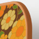 A bold, floral design with colourful shades of gold, orange and green with a fun colour block to add your name or any text. The crazy flower pattern has a variety of colours.