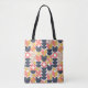 This chic retro design features a geometric floral pattern in peach, saffron, dark grey and beige on a white background. #retro #chic #modern #floral #pattern #botanical #geometric #geometrical #stylish #style #elegant #trendy #trending #tote #bags #totebags #handbags #accessories #gifts