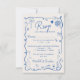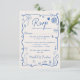 Trendy retro French blue illustrated wedding QR RSVP Card