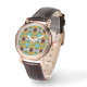 Trendy retro pattern in yellow, blue, brown, white watch