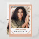 Trendy Rose Gold Foil Graduation Announcement is perfect for the high school or college graduate that is looking for an elegant yet trendy and simple card. Includes space for 2 photos, one on the front and one on the back. Personalise the text to read whatever you like. Example shown with rose gold foil. Choose silver or gold to mix up your metals!