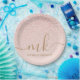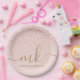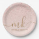 Trendy Rose Gold Glitter Fancy Initials and Name Paper Plate