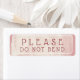 An eye-catching, trendy label with the words "PLEASE DO NOT BEND" white beveled text on a rose-coloured grunge textured background and a white beveled border. Great for packaging fragile items. Good for online shop sellers.