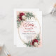 Celebrate a special upcoming arrival with this boho baby shower invitation featuring rich burgundy, deep red, marsala, and maroon watercolor peonies, accented with soft eucalyptus greenery and elegant gold details. This warm, romantic color palette creates a stylish and inviting look, perfect for bohemian, rustic, or modern baby shower themes.