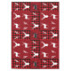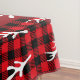 Trendy rustic plaid and white reindeers red and black tablecloth for Christmas dinner.