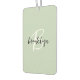 This elegant personalized car air freshener features a monogram and first name in modern black and white script on a trendy sage green background.