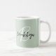 Trendy Sage Green Black White Script Monogram Coffee Mug