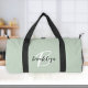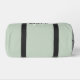 This personalised duffel bag features a monogram and first name in modern black and white script on a stylish sage green background.