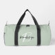 Trendy Sage Green Black White Script Monogram Duffle Bag