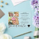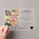 Customise these trendy script acrylic graduation party invitations in black and white and highlight three of your favourite photos of your graduate. Set on clear acrylic cards, these sleek invites have a collage of 3 photos on the left side and GRADUATE in a large girly script font in black with a white drop shadow that slightly overlaps the bottom photo. A small black cap and tassel icon, complete with a white drop shadow, completes the design. Add your graduate's name at the top then fill in your graduation party details in the smaller simpler font below. These custom acrylic graduation invites can be turned into graduation announcements simply by you changing the wording.