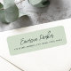 Light sage green or custom colour return address labels with your name in a trendy, handwritten style script font. Fonts and colours can be customised with the design tool.