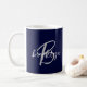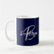 Trendy Script Monogram Navy Blue Grey White Coffee Mug
