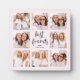 This trendy plaque features eight of your favourite photos of you and your bestie! The words "best friends" appear in black modern script, and there is room to add the name of you and your best friend on a pretty, blush pink background.