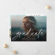 Trendy Script Overlay Multi Photo Graduation Announcement features the Graduate with a 4 photos. Announcement is accented with pretty, handwritten style white typography with your graduate's name and school. The back of the announcement allows for your custom text, pretty script that reads "she did it" and 3 graduate photos. The perfect modern announcement for your Graduate.