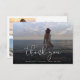 Trendy Script Overlay Multi Photo Graduation Thank You card with 3 photos. Thank you card is accented with pretty, handwritten style white typography with your graduate's name and graduation year. The back of the the thank you card allows for your custom text, pretty script that reads "thank you" and and 2 graduation photos. What a lovely way to say thank you. Thank you card is part of a collection.