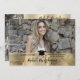 This elementary school/middle school/high school/college/university graduation announcement features a gold header with cap and diploma graphic which cannot be edited, moved, or deleted. It contains three photos in all (one in the front - landscape orientation) and two small portraits in the back. You are able to customise a part of the design to fit the graduate's needs. You can only customise the wording.