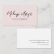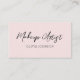 Trendy script makeup artist business cards with a modern blush pink front and classic white back. Personalise these chic blush pink business cards with trendy modern script on the front and your contact details on the back.
