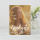This trendy casual graduation announcement features two photos of the college or high school graduate. Casual, modern white script appears on front photo overlay along with a photo of the graduate on the back with simple black font for the announcement. You can adjust the wording on the back of the card to make this either a simple graduation announcement, or a grad party invitation. A stylish and simple design for this year's graduation!