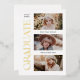 This stylish graduation announcement also doubles as an invitation to a graduation party. The front features the word graduate in the foil colour of your choice. It also has space for three photos as well as the graduate's name, class year, and school. The back of the card has space for another photo as well as details for your graduation party.