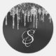 Trendy Silver Black Glitter Drips Graphic Monogram Classic Round Sticker