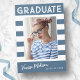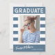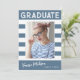 Trendy Stripes Simple Retro Graduate Photo Blue Announcement