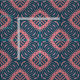 Seamless decorative geometric pattern featuring geometric shapes in pink and dark blue.