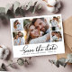 Elegant Minimalist 5 Photo Collage Wedding Save The Date Cards, showcasing a fashionable calligraphy script and a sophisticated in classic black and white. This collection is specifically designed for modern weddings, exuding an enchanting and romantic allure. With a gracefully arranged 5 photo grid collage and captivating hand-lettered swash tail font, these cards capture the essence of contemporary elegance. Easily customise each card to reflect your unique style by incorporating cherished wedding details and pictures, offering a refined and sophisticated means to announce and celebrate your extraordinary day.