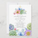 Vibrant watercolor first holy communion invitation featuring pink and purple flowers, succulents and eucalyptus leaves.