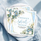 Add elegance and charm to your celebration with these Sweet Sixteen paper napkins featuring watercolor dusty blue flowers and eucalyptus greenery woven around a shimmering gold glitter frame. Designed in a minimalist yet sophisticated style, these napkins bring the perfect touch of refinement to your Sweet 16th birthday party.