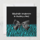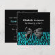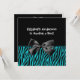 A trendy teal and black zebra print boy baby shower invitation with a modern black ribbon tied into a bow. Personalise this matching set by adding the name of the mother-to-be. Flat printed image, not actual ribbon.