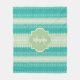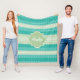 A trendy bright teal and lacy light green striped knit pattern fleece blanket. Personalise this stylish knitted design by adding your name and monogram. This is part of the Arcadia Knit Pattern With Nile Green Monogram Collection. Flat printed image, NOT made with knitted yarn or lace.