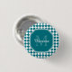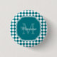 A trendy teal and white geometric diamond checked tile pattern monogram button. Personalise this stylish design by adding your name and monogrammed initial.