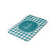 Trendy Teal and White Checked Monogrammed Name Bath Mat