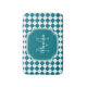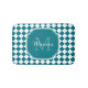 A trendy teal and white geometric diamond checked tile pattern monogram bathmat. Personalise this stylish design by adding your name and monogrammed initial.
